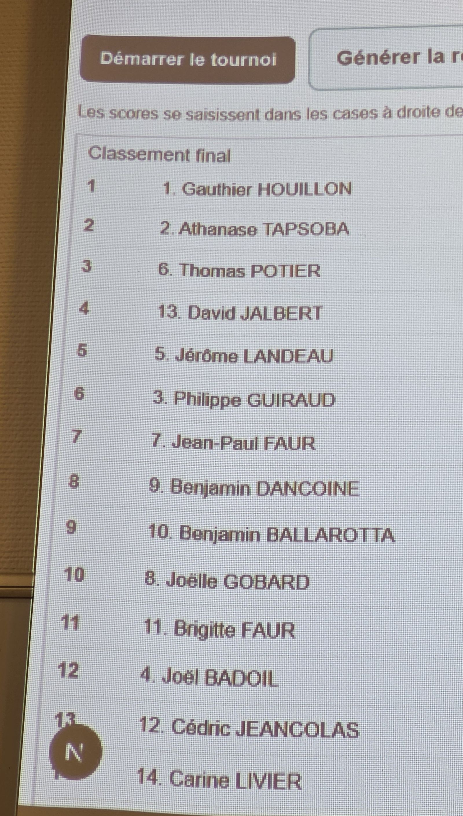 Gauthier Houillon (Nancy) Vainqueur   Thomas Potier (Fruges) 3ème